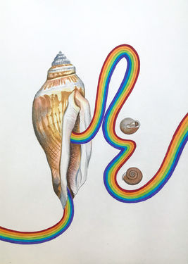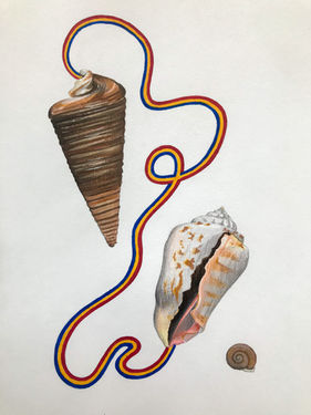 Watercolor, Vellum, Cyanotype, and Embroidery